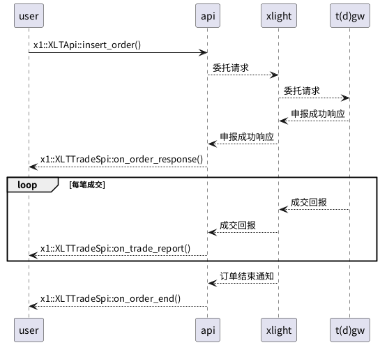 - 调用 x1::XLTApi::insert_order() 发送报单请求