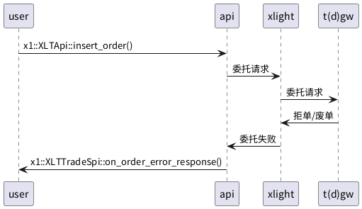 - 收到 x1::XLTTradeSpi::on_order_error_response() 回调,包含错误信息