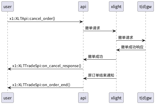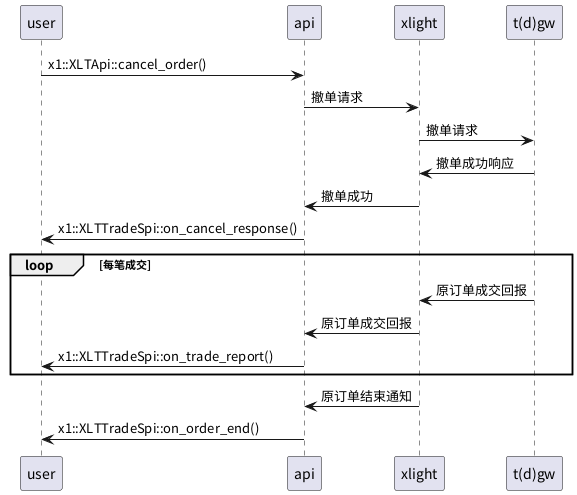 - 调用 x1::XLTApi::cancel_order() 发送撤单请求